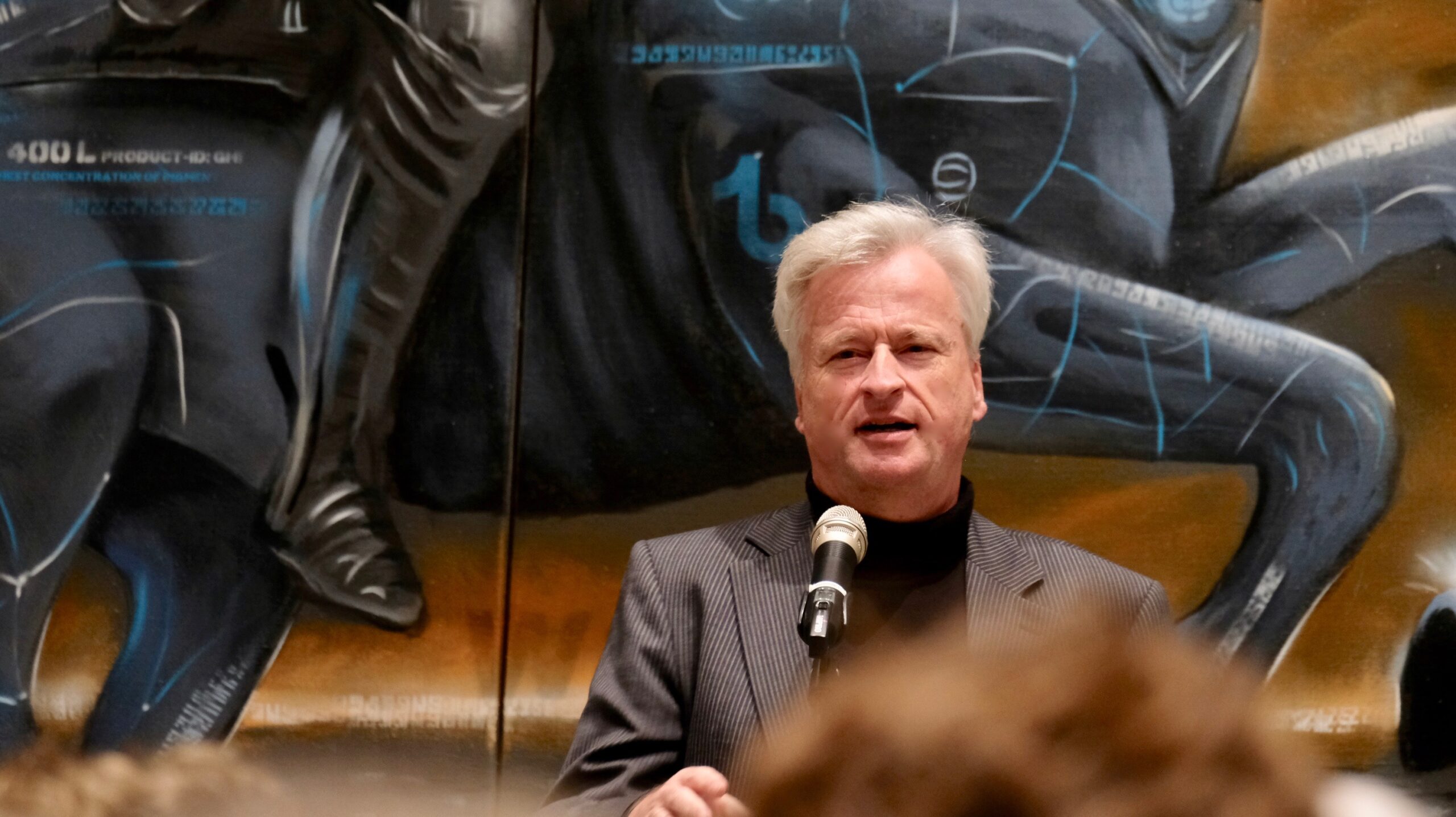 An diesem Tag sind sie noch in der Kirche unterwegs – unheilvoll, verheißungsvoll und ein bisschen trostvoll in ihrer schrecklich-schönen Klarheit. Der Künstler Thomas Baumgärtel hat für das 2024 von der Evangelischen Kirche im Rheinland veranstaltete Kunstprojekt „Apokalypse“ den vier Reitern aus der biblischen Offenbarung des Johannes malerisch eine Gestalt gegeben – mit vier mal vier Meter großen Gemälden. Vier Wochen lang waren sie in der Erlöserkirche in Weidenpesch ausgestellt und hinterließen großen Eindruck.
